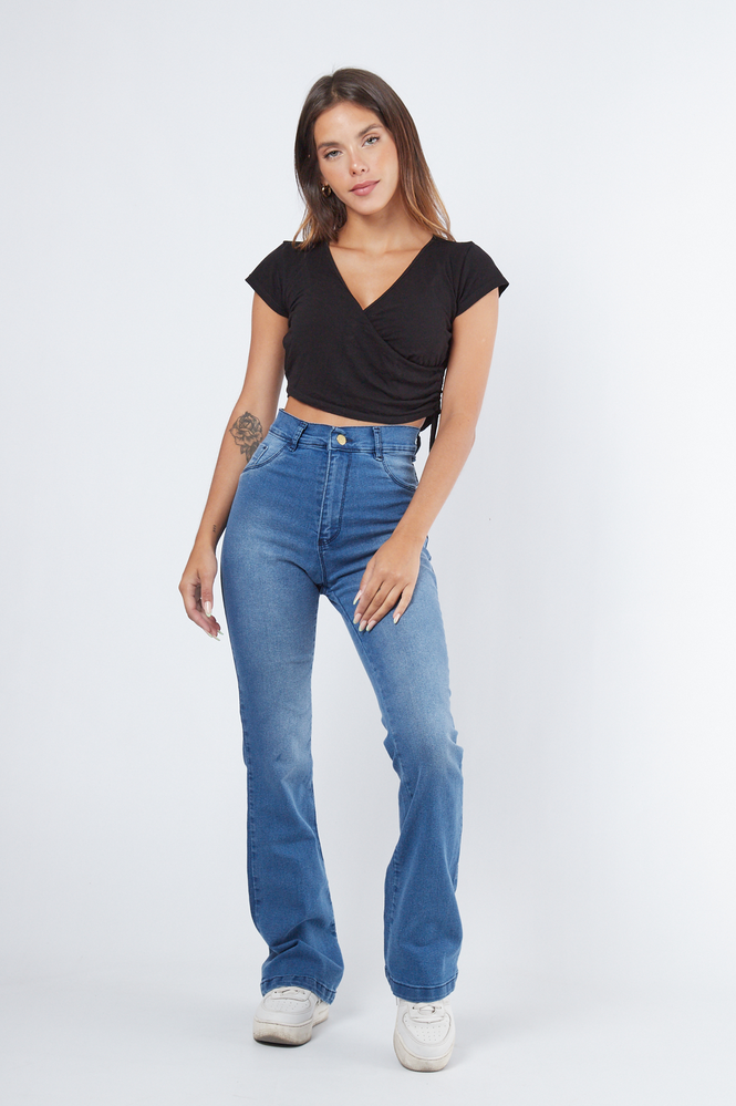 Tiro- Alto Bolsillo- REAL Botamanga- Ruedo Hilo- Azul Tela- Jean Elastizado - Alg./Pol./Ly. LA MODELO MIDE 1.60 Y VISTE UN TALLE 36 MEDIDAS 85-54-84