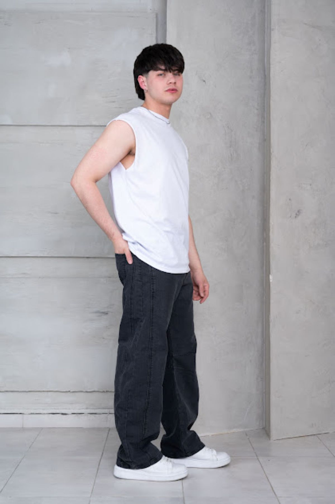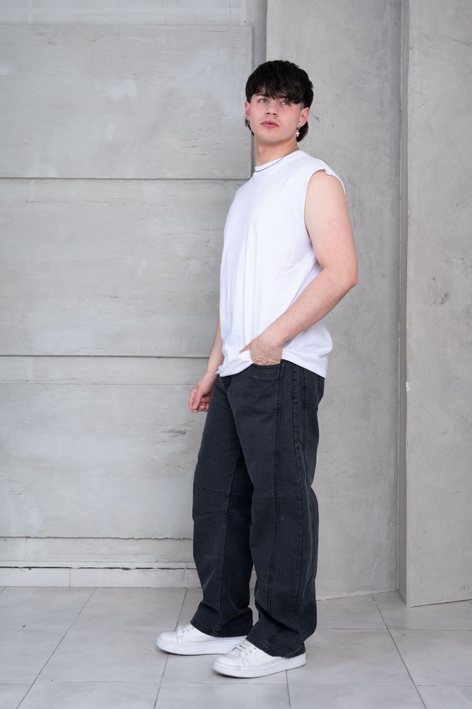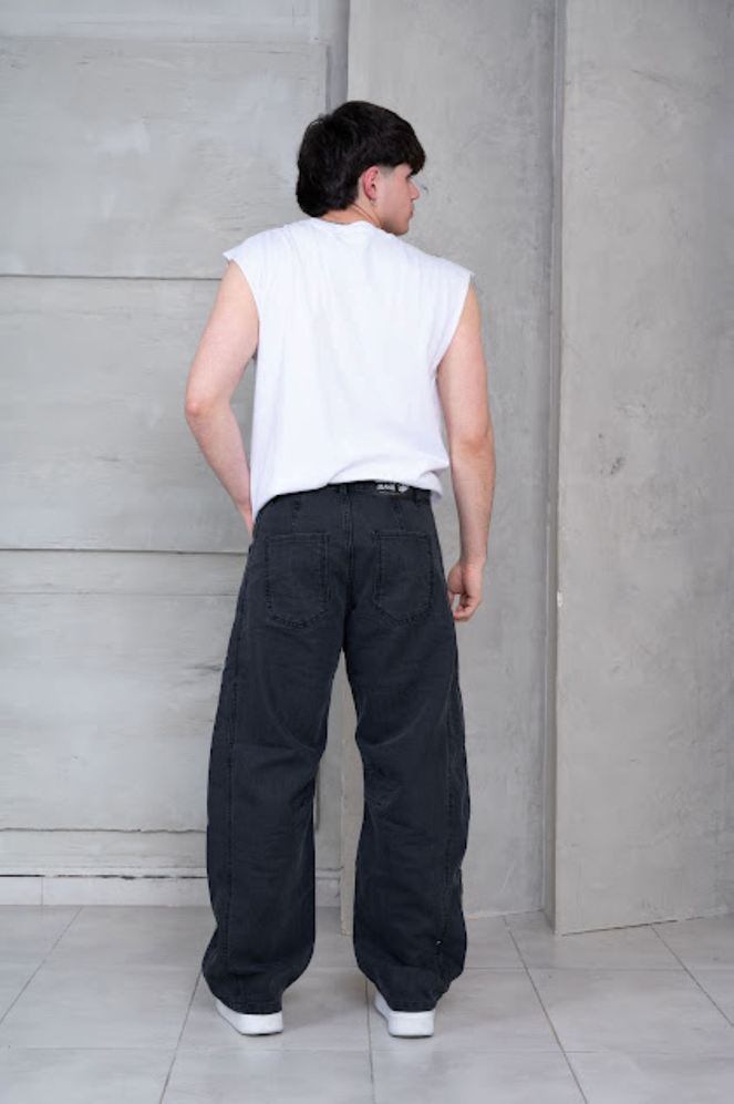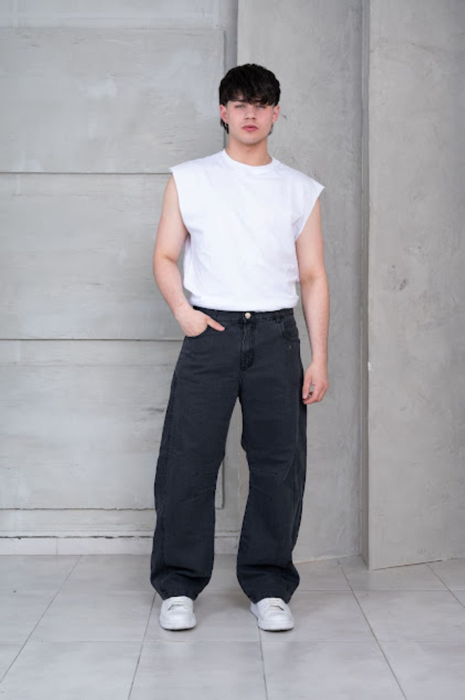 Calce- Baggy Bolsillo- Real Terminación- Ruedo Hilo - negro Tela- Jean Rigido - Alg. 100